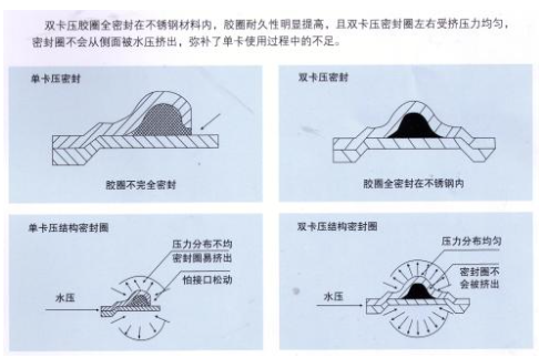 比一般的单卡压提高了抗压能力,提高了1.8倍左右,使用更安全与放心,能够使用在比较苛刻的环境中,比如高楼层,比如高水压的建筑之中。