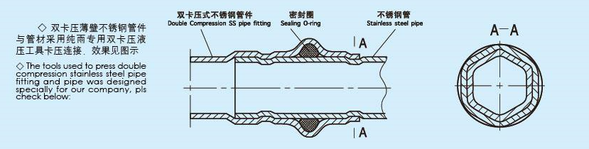双卡压接头处,管子受外力折弯变形时对密封圈不会产生影响,双卡压管件式卡连接技术性能、技术指标、技术水平的升级产品。双卡压式管道系统是国内薄壁金属管道连接方式中合理安全可靠的连接方式之一,其广泛适用于直饮水、自来水、冷热水、供暖、燃气、消防喷淋等众多系统领域。
