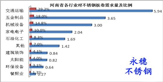 结合上面河南省各区域的统计数据,河南省wb万搏(中国)首页官方网站板卷主要应用于五大行业,需求量达16.32万吨,合计占比80.4%;三大重点行业需求量达12.59万吨,合计占比62.0%。数据反映河南省各市wb万搏(中国)首页官方网站消费结构虽然各有特色,但由于各地区差异化消费发展较为合理,使得整体上河南下游wb万搏(中国)首页官方网站消费结构较为均衡。从调研数据另一面也可以反映出河南省wb万搏(中国)首页官方网站需求结构稳定,市场风险较小。