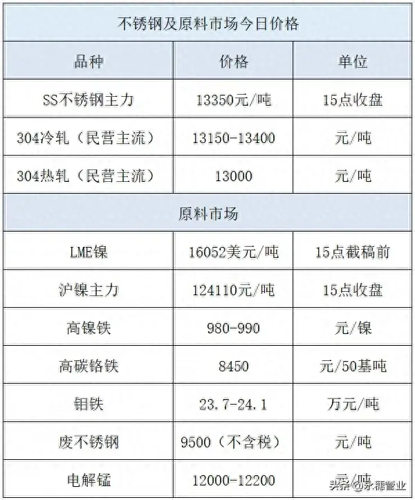 截止周五,304冷轧/热轧主流资源价格均累计下跌100元/吨。目前304冷轧成交价格在13200元/吨毛基,304热轧成交价围绕13000元/吨展开。
