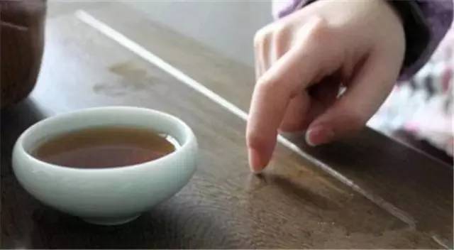 喝茶是长辈的,用中指在桌上轻弹两下,表示感谢;
