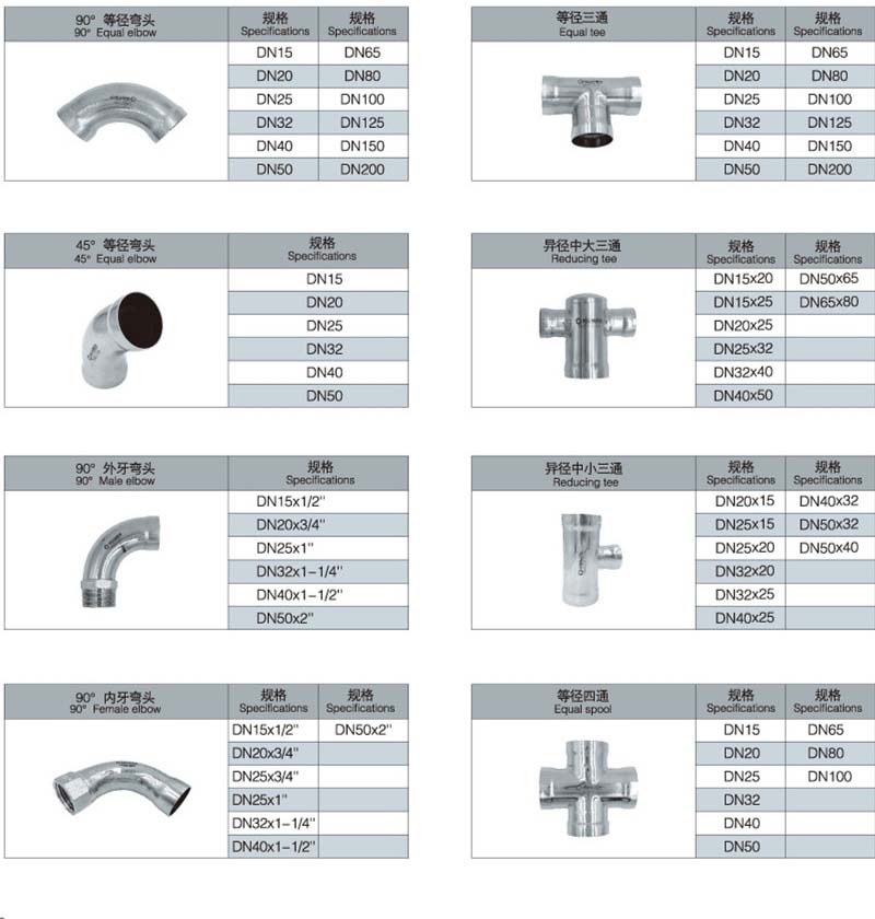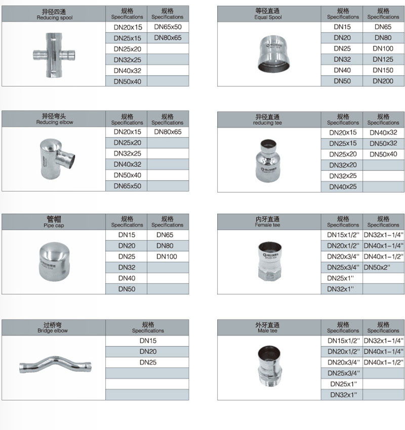 wb万搏(中国)首页官方网站承插焊管件的品种包括:承插焊式45°等径弯头,承插焊式90°等径弯头,承插焊式180°等径弯头,承插焊式内牙弯头,承插焊式外牙弯头,承插焊式异径弯头,承插焊式外牙三通,承插焊式内牙三通,承插焊式等径三通,承插焊式异径中大三通,承插焊式异径中小三通,承插焊式等径四通,承插焊式异径四通,承插焊式等径直通,承插焊式异径直通,承插焊式外牙直通,承插焊式内牙直通,承插焊式过桥弯管,承插焊式管帽,承插焊式分水器等。